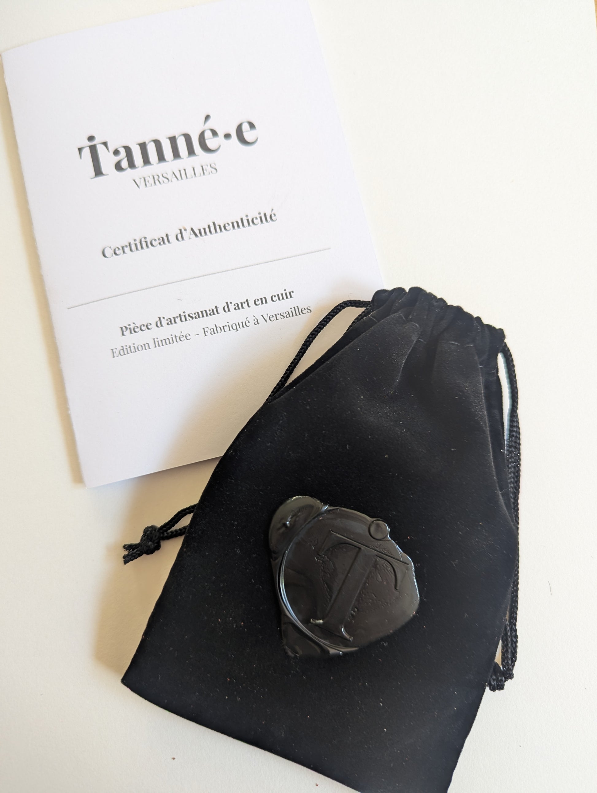 - Le Céline sera accompagné de son pochon de velours noir fermé par une cordelette de coton et sera scellé par le cachet de cire noir de Tanné-e
